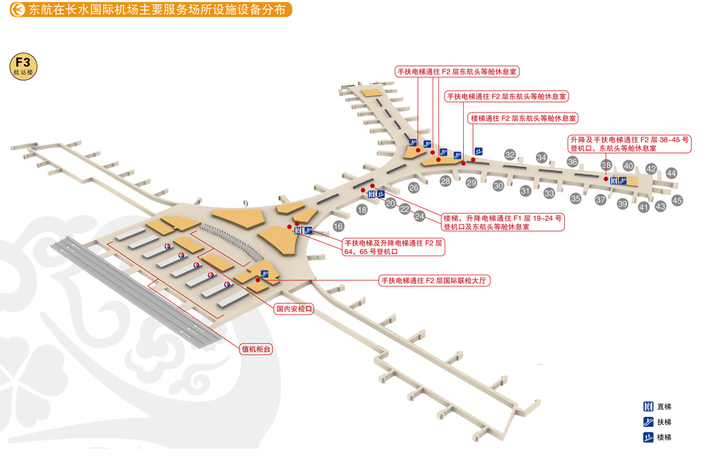 | 候机区域 | 头等舱候机室 | 隔离区内,过安检后左前方 |